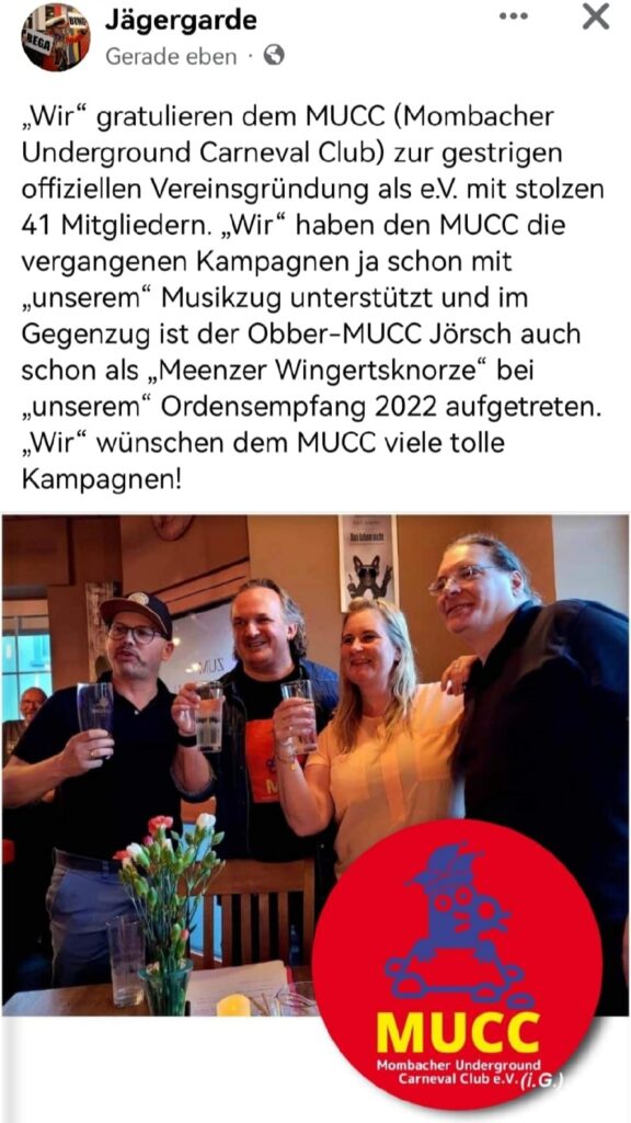 In Mombach lebt die fünfte Jahreszeit vom Miteinander, vom Lachen, von Freundschaft und Herzblut! Genau das wollen wir zeigen: In den kommenden 11 Tagen erschaffen wir 11 ganz besondere Muccis – jeder in einem Outfit einer befreundeten Garde, mit der uns viele tolle Menschen, Erinnerungen und jede Menge närrische Stunden verbinden.