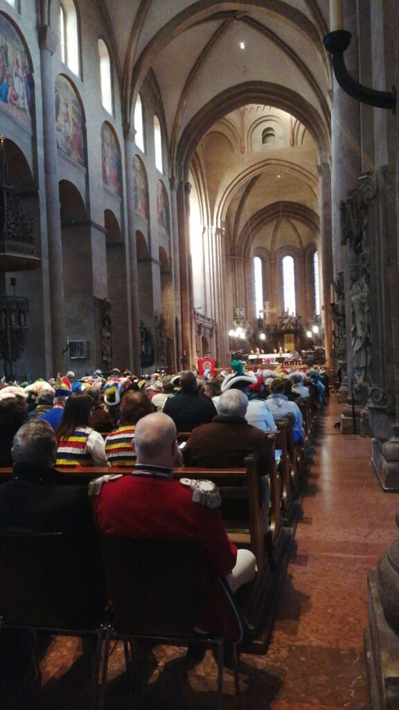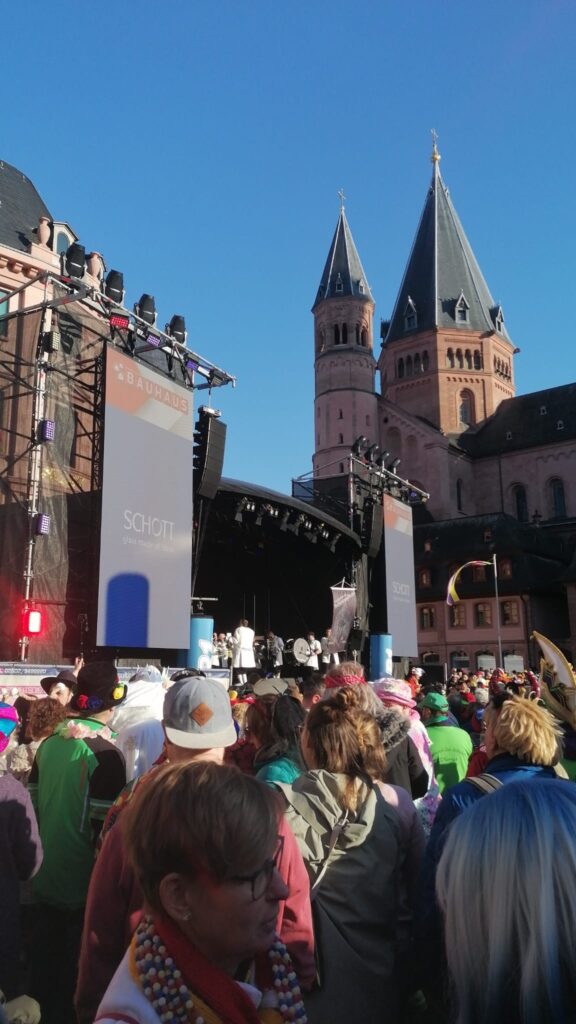 So. 02.03.2025: Gottesdienst der Mainzer Garden im Mainzer Dom, Parade der Mainzer Garden und Präsentation der Motivwagen, Besuch des Guggemusik-Festivals auf dem Domplatz sowie einiger Feldlager in Mainz durch Abordnungen des MUCC e.V.: