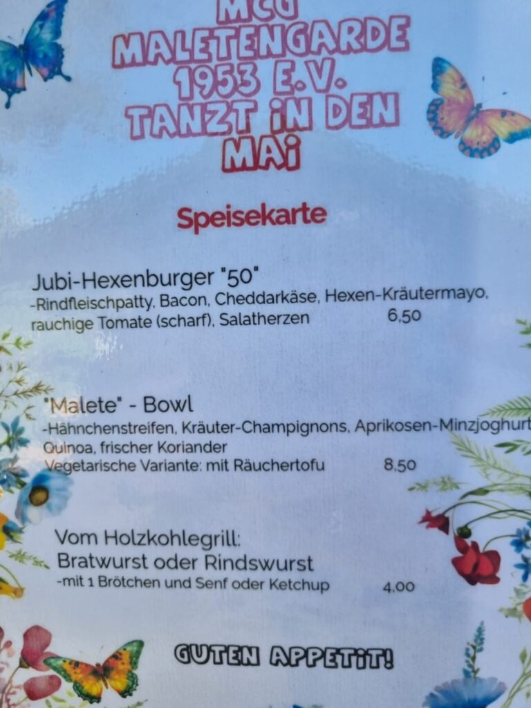 Mi. 30.04. + Do. 01.05.2025: MUCC-Stammtisch/Mai beim „Tanz in den Mai“ und traditionelles „Maibowle-Trinken“ am „Tag der Arbeit“ im Biergarten des „MCG – Die Maletengarde“(Einen großen Dank für die meißten der schönen Bilder an unser „Bärchen“ Peter Schmalzing):