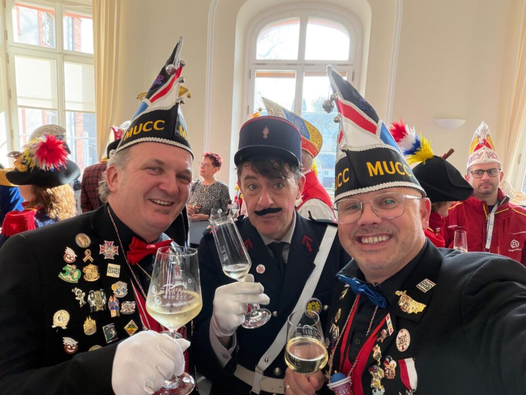11.11.2025: Am Schillerplatz in Mainz wurde um 11:11 Uhr das närrische Grundgesetz verlesen. Der MUCC entsandte natürlich eine offizielle Abordnung. Außerdem durften das erste Mal unser OBBER-MUCC und unser VIZE-MUCC als Vertreter des MUCC im Osteiner Hof auf der Bel Étage bei der Zeremonie live hautnah dabei sein. Danach wurde die Stadt unsicher gemacht.