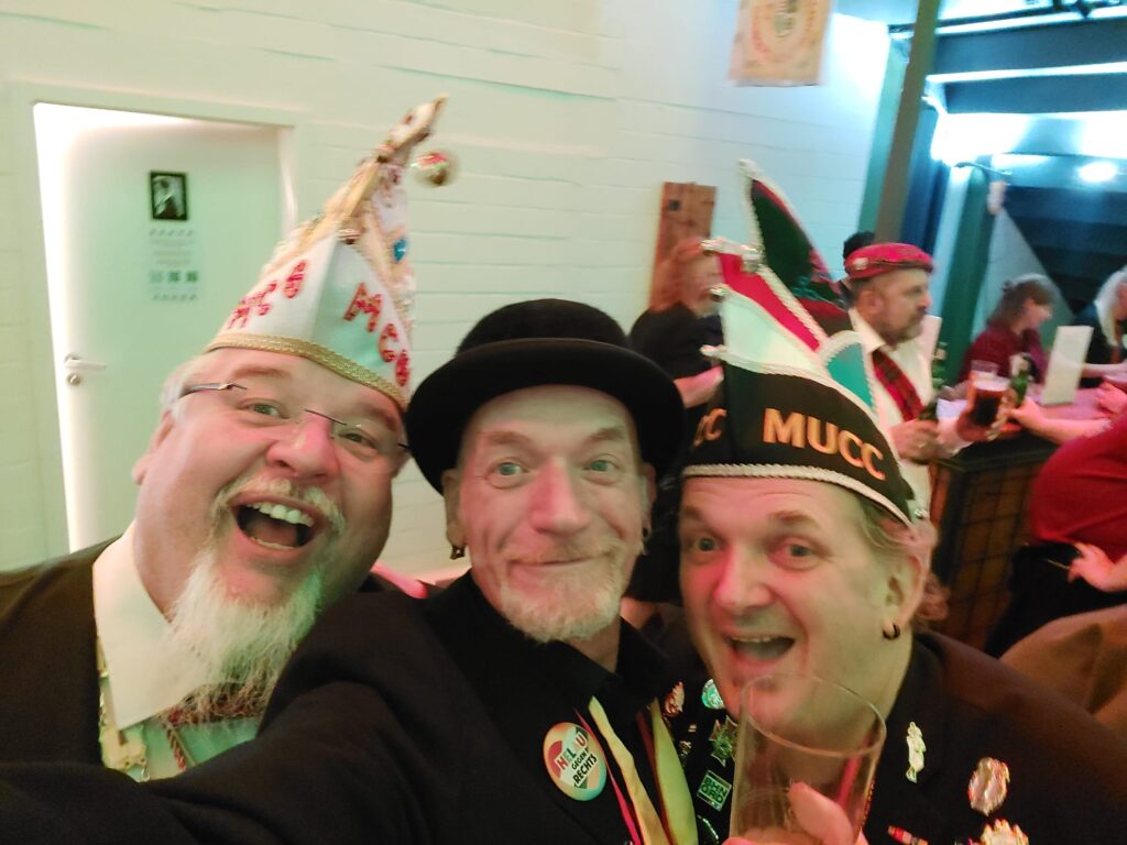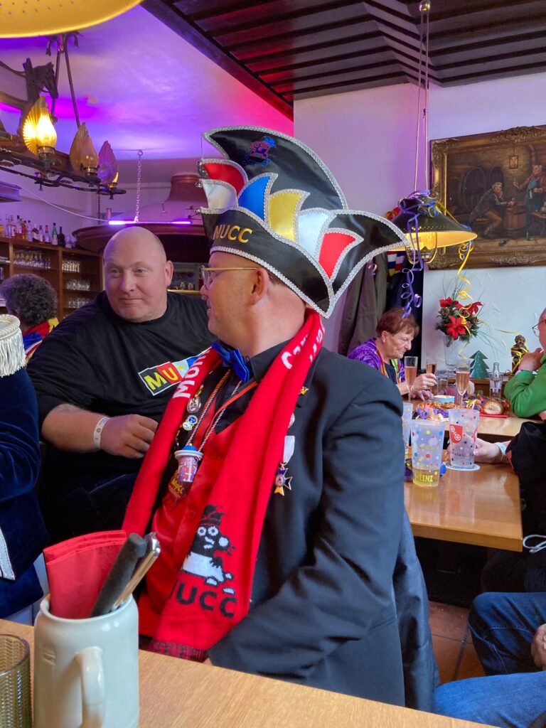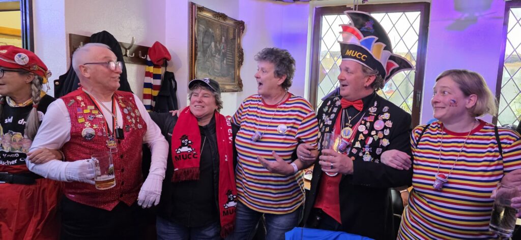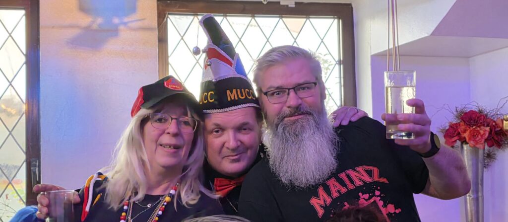 15.11.2025: Besuch einer MUCC-Abordnung des traditionellen Schnitzelabends des „CCM – Die Eulenspiegel“ und Auftritte unserer MUCC-Aktiven Stefan Schmidt und „Der Meenzer Wingertsknorze“ im Gemeindezentrum St. Nikolaus! Danach ging es noch weiter zu einem „Absacker“ bei unseren Freunden des „MCG – Maletengarde 1953 e. V.“.